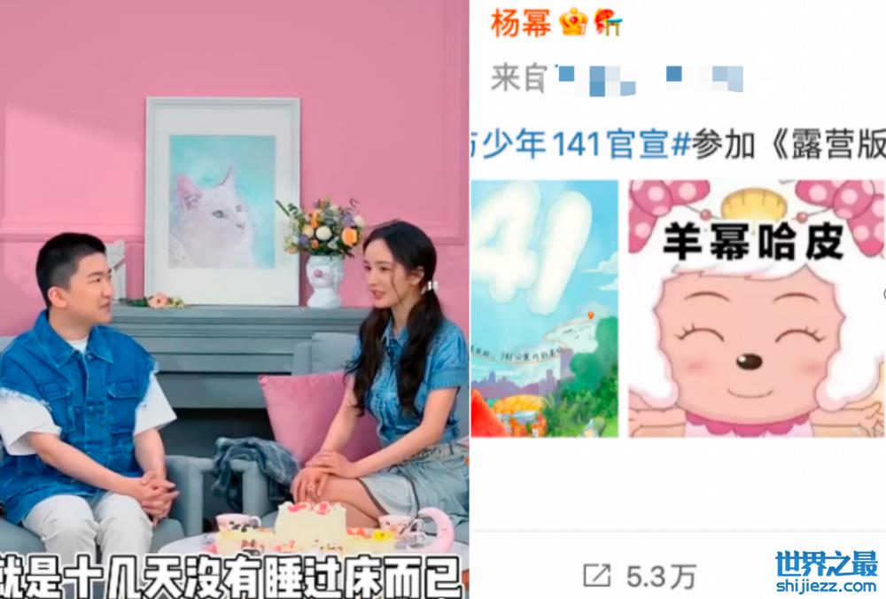 在这次直播中张大大询问杨幂近期参加某档综艺感受如何,杨幂回答:“挺好的,也就是十几天没有睡过床而已”,在杨幂的个人社交平台还用了自己的表情包“羊幂happy”来表达自己的心情,真的太会玩梗了,简直是5G冲浪小达人。