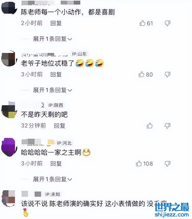 评论区网友纷纷表示“陈老师演的确实很好”、“陈老师每一个动作都是喜剧”,可以看出,网友们也非常喜爱看陈佩斯他们一家人的日常,视频中的他们无论是表情还是说话方式都非常有趣,令网友们看了后情不自禁笑出声来。