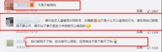 事情发生后,网络上的评价出现了两极化,一部分人作为倪妮的粉丝在怒斥盗账号者,认为这里是倪妮和粉丝分享日常的净土,支持维权。而有一部分网友则认为,为什么普通人不能翻墙使用国外app,而明星就可以,这难道不是属于明星的特权吗?