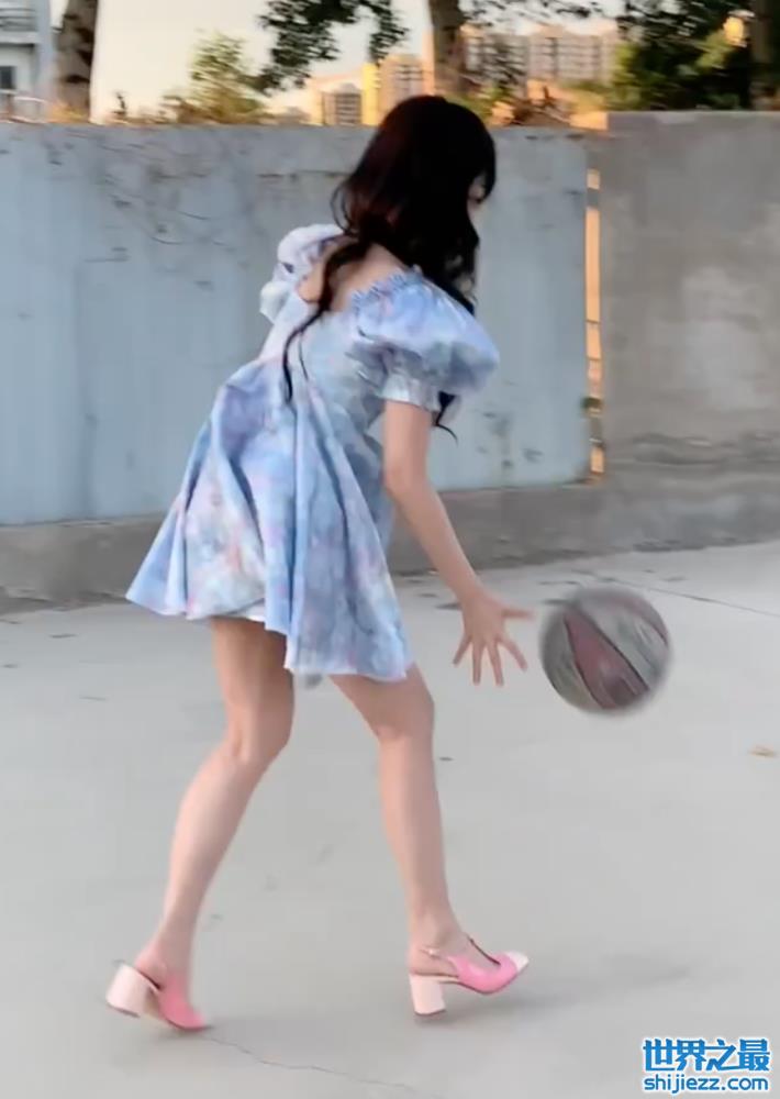 穿着一双粉红色的高跟鞋,本来只是在拍照的虞书欣,突然拿起手上的篮球开始拍打了起来,她穿着高跟鞋一边走一边运球,看起来非常得心应手。虞书欣一路小跑非常顺畅,居然一次也没有摔倒,非常厉害。