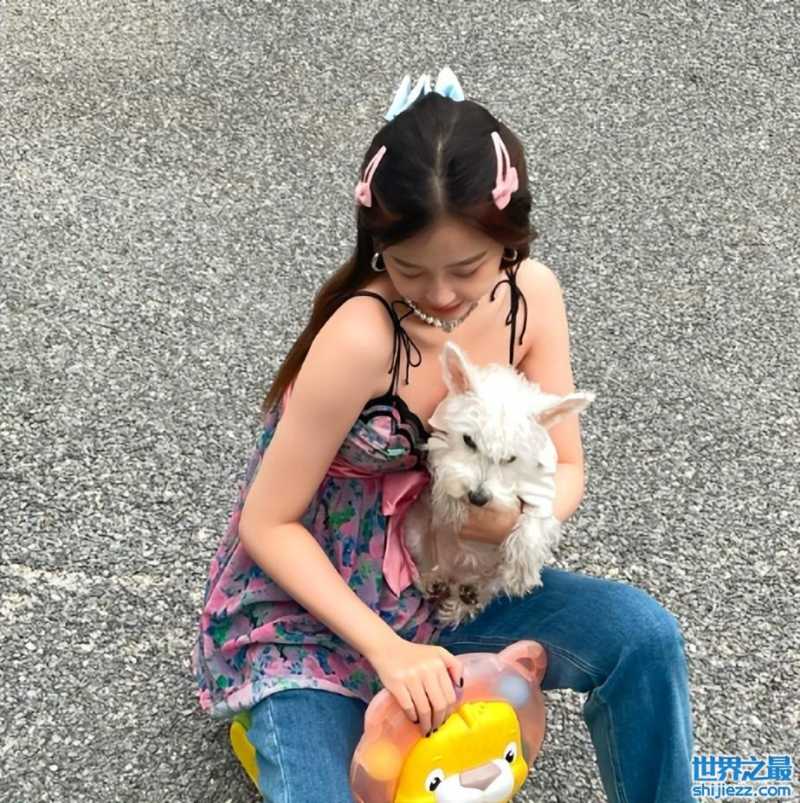 在前不久,虞书欣也晒出自己在空闲时间遛狗的照片。画面中虞书欣穿着清纯的吊带坐在地上,一点不嫌脏。虞书欣怀中抱着可爱的狗狗,头上夹着亮眼的小夹子,脖子上戴着可爱的配饰,整体搭配很是青春活力。