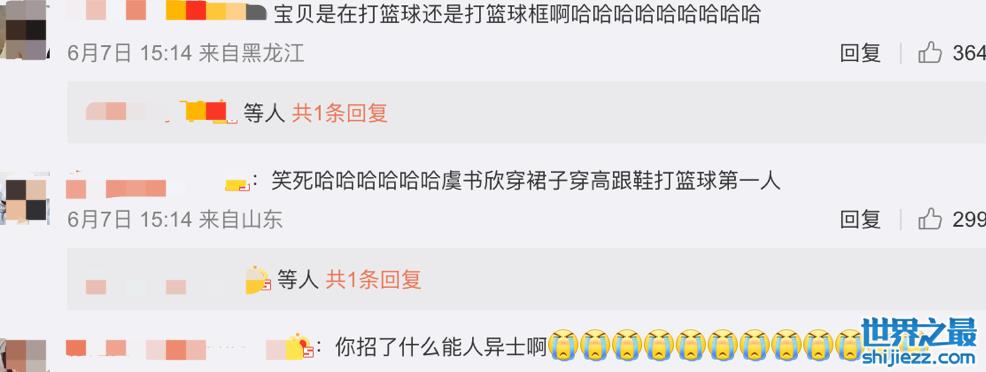 评论区网友纷纷表示“笑死了”、“这是什么能人异士”,可以看出,网友们看到美女穿着短裙还穿着高跟鞋投篮感到非常新奇,不禁感叹虞书欣是什么超人,居然穿高跟鞋打篮球能不摔倒,这场面逗笑众人。
