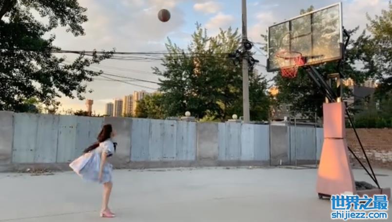 紧接着虞书欣跑到离篮框有一定距离的地方站定,用力将篮球向斜前方投去,投出了一道完美的抛物线,动作危险难度极高但又不失优雅。元气美女穿高跟鞋打篮球实在是非常少见,而且过程中还没有摔倒,稳稳投篮也让人感觉非常帅气。