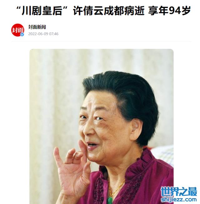 6月9日,艺术圈再传噩耗,94岁川剧表演艺术家许倩云在8日夜里因病离世,结束了自己灿烂辉煌的艺术人生。