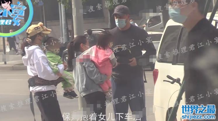 谭维维与老公抱俩娃逛街!腰上系背带好辛苦,老公皮肤黝黑身材壮 ...