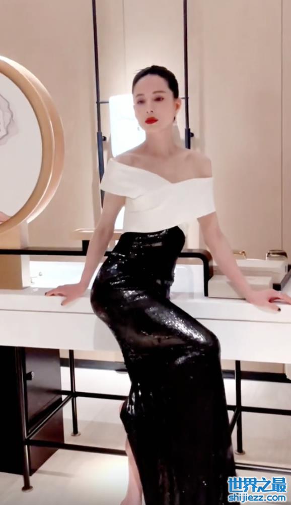 55岁李若彤穿紧身裙秀曲线!领口大开露事业线,皮肤白皙锁骨明显 ...