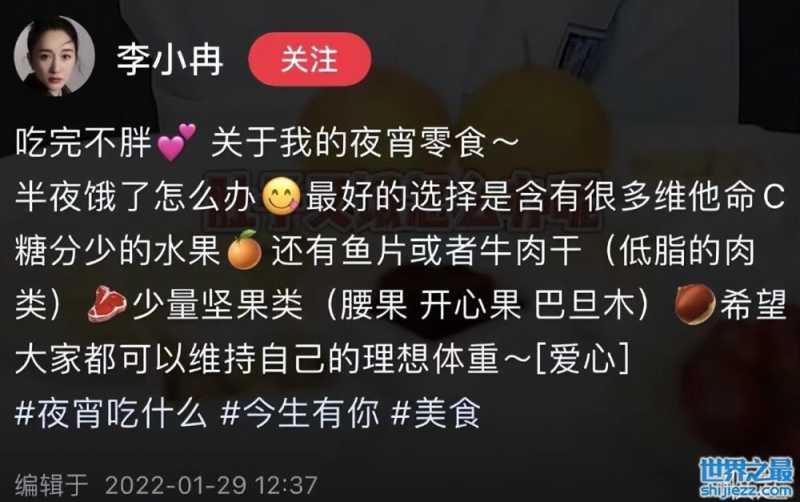 尽管如今也会有人吐槽“女神已老”,但事实上在娱乐圈打拼的这24年,李小冉无论是容颜还是身材几乎没有走样。这与她坚持良好的生活习惯与健康饮食有重要关系,在她的个人社交平台曾分享过自己的夜宵零食都是非常健康的饮食。