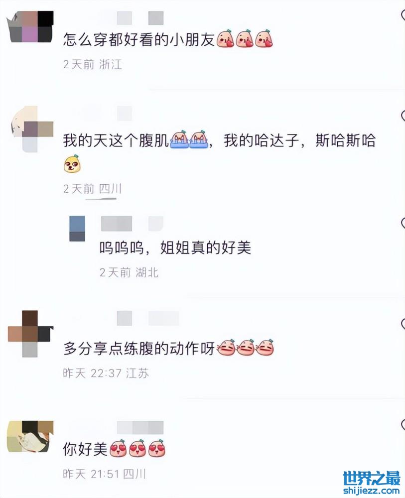 评论区网友纷纷表示“好美”、“腹肌好帅”,可以看出,网友们都被王紫璇的腹肌所震惊到,漂亮的脸蛋和漂亮的腹肌搭配在一起,让网友们觉得王紫璇健康且迷人。