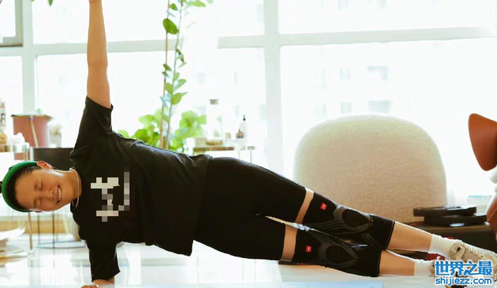 不仅如此,白百何还晒出了其它的健身照片。白百何将头发用发箍全部扎在脑后不留一丝细发,显得十分干练。她单臂撑地,支起整个身体,膝盖都戴上了护膝带,身体笔直,动作非常标准。但是图中的白百何紧咬着牙关,看起来表情非常痛苦,但她还是坚持了下来,非常厉害。