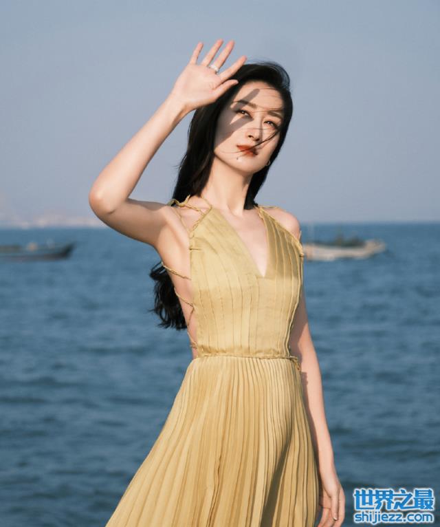 刘敏涛在社交平台上也会经常晒出一些自己的美照,图片中的她一头及腰乌黑长发,身穿一些金黄色露胸长裙,露出纤细白皙的手臂,她抬起右手微微挡着阳光,身后是一片蔚蓝的大海,端庄且美丽。