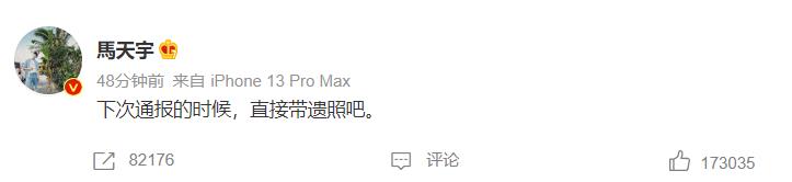 众多圈内明星也纷纷站出来发声,看到柔弱女子被几个男生轮番殴打,更有众多男明星气愤不已,马天宇更是愤怒到让下次通报的时候直接带上遗照,虽然只有简短的13个子,但他的正义发声得到了众多网友的支持与赞同,这条动态发布还不到一个小时就有17万多人点赞,更有8万多人转发,大家被马天宇圈粉,也直呼他真的太刚了。