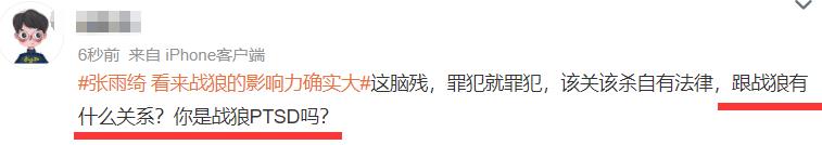 正如张雨绮预感的一样,她的这条动态很快遭到了男同胞的热议,尤其是有关“战狼”的言论,有网友不理解这事和战狼有什么关系,还有网友表示,张雨绮的这番言论让失声的男人瞬间一起声讨,尤其引发了对立,唯恐天下不乱。