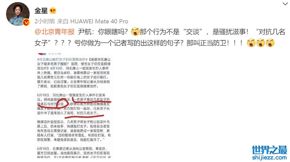 金星为唐山打人事件三次发声,怒骂是流氓恶霸,还硬刚用词不当的媒体记者 ...