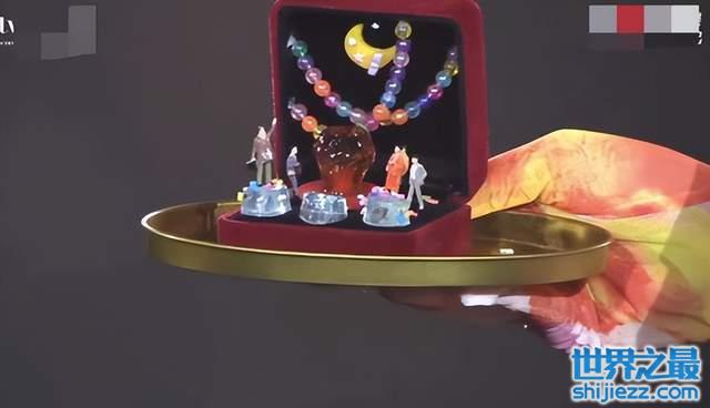 掀开物品上放方盖着的红布,发现里面是一个非常可爱精致的像戒指一样的装饰品,郑欣宜端着这个戒指礼盒,一直在诉说着难以置信,这可以说是非常意料之外的惊喜。她看着面前的绿发男生告诉他,她爸爸今天也在这看着的。