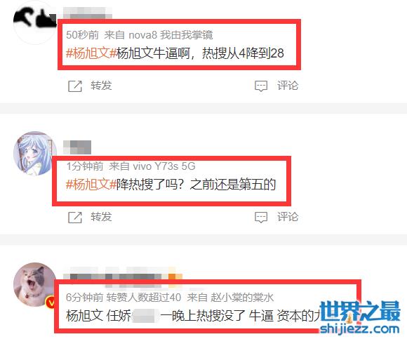 也因此,不少白敬亭以及宋轶的粉丝要求剧组换人,一是担心该剧拍摄完无法上映,二是担心该剧上映后因为杨旭文而口碑变差,更有网友要求抵制杨旭文,随着热搜的快速下降,有网友也质疑杨旭文在背后一直在降热度。
