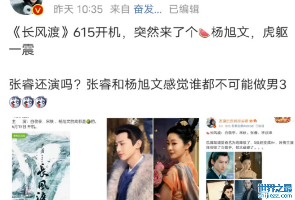 近日,有多位大V报道杨旭文即将进组拍摄新剧《长风渡》,该剧开机时间定在6月15日,杨旭文被曝将出演男二号,目前网友针对此事议论纷纷。