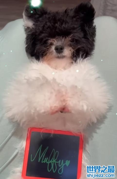 宠物狗也有独立的庆生照片,这一只小犬据说价值也是超过50多万,一只狗就价值一套三线城市的小楼房,十足的奢华。