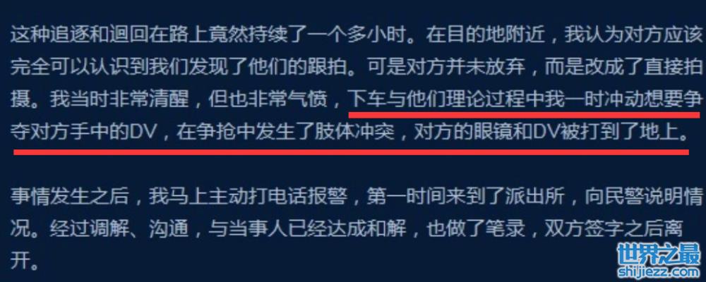 事发之后,这位被打的女记者和其所在工作室发布联合声明,怒斥徐峥在暴力行为之后不仅没有诚恳道歉,还没有履行此前的承诺陪同受伤女记者去医院诊治,而为了挽回风评,徐峥公开道歉,他表示是在抢拍摄机器的过程中与女记者发生了肢体冲突,而动手打人的原因是对方偷拍导致他恐惧。