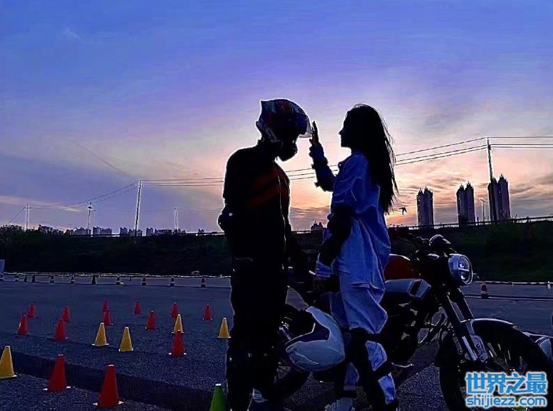 在第一张照片中杜海涛与沈梦辰站在一辆机车旁互相注视着对方,沈梦辰身体向前倾,姿态亲昵,另一张照片中沈梦辰摸着杜海涛的头盔,背景的晚霞显得整体画面就像偶像剧一样非常的唯美,两张图拼接在一起是可以做壁纸的程度。