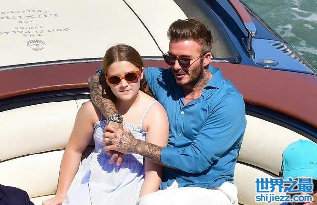 近日,有媒体拍到贝克汉姆与10岁宝贝女儿小七现身威尼斯享受贡多拉游船。画面中的贝克汉姆戴着墨镜,穿着蓝色长袖衬衫,手臂和脖子上的纹身瞩目,身边的女儿小七戴着橙框墨镜,穿着吊带长裙,露出白皙的手臂,虽然小七看起来长胖了但依然十分可爱。
