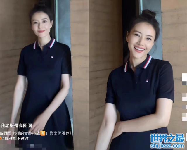 高圆圆大玩变装秀!扎丸子头皮肤白嫩,身材太瘦衣服空荡锁骨明显 ...