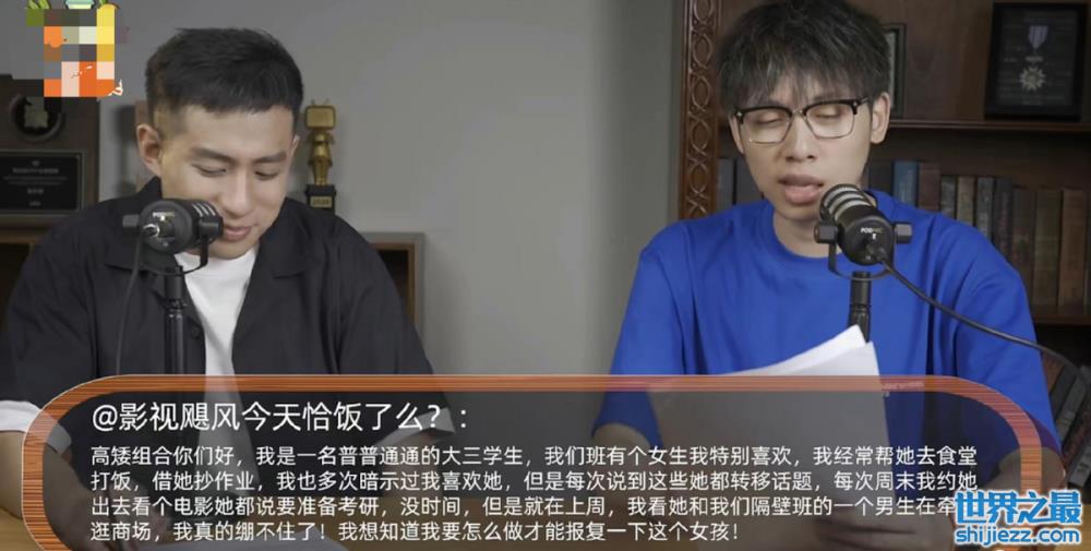 在他们发布的视频中,有男粉丝来信投稿,说自己喜欢的女生拒绝了他的追求,询问说应该怎么报复这个女生,博主兔叭咯直接赞同这位网友想要报复的想法,并提建议说“你必须让她长点记性,就这样这样老娘们,这件事肯定不能明着跟你周围人说,而是要旁敲侧击、暗讽暗示,说这个女生怎么怎么地。”