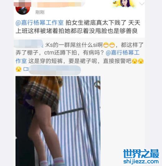 这些代拍也不知道起的什么心思,当时杨幂穿着的长体恤,超短裤,外面还套着一件格子外套正常上楼,一群人就蹲在楼梯下面用手机用摄像机拍,幸好这次杨幂穿的是短裤,如果是短裙,这样的行为是否违法?