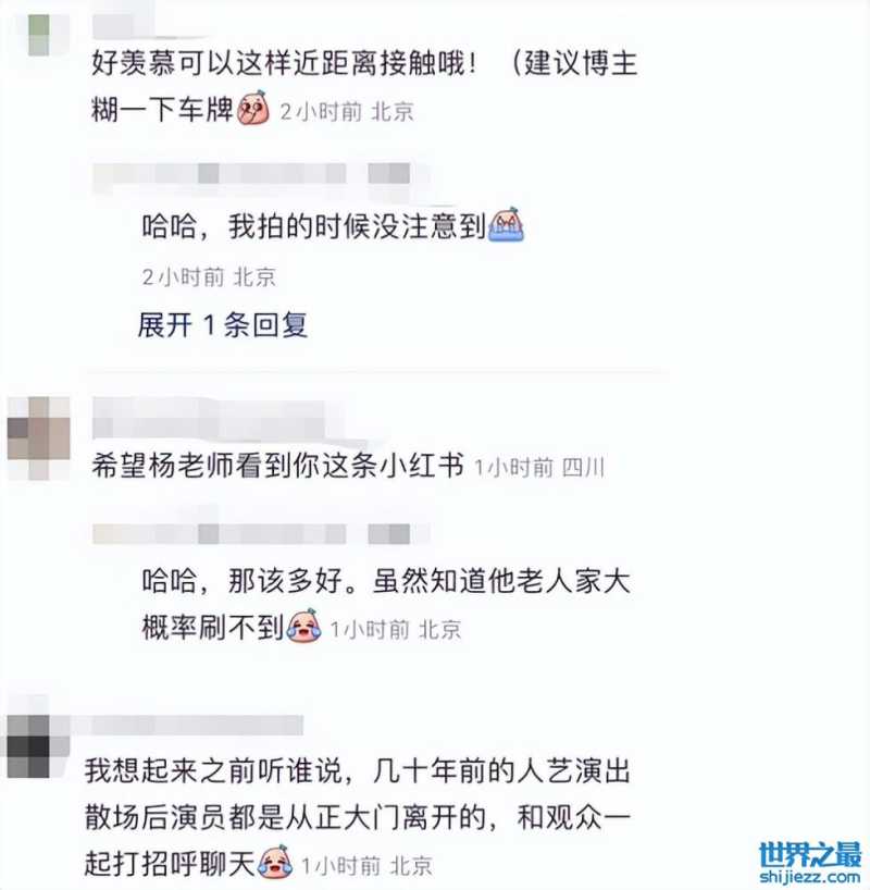 在看到网友发布的这条视频后,大家纷纷评论好羡慕可以见到杨老师,还能近距离接触,也有网友表示自己听说之前的演出人员演出结束后都是从正大门离开,和观众一起打招呼聊天,很是亲和。