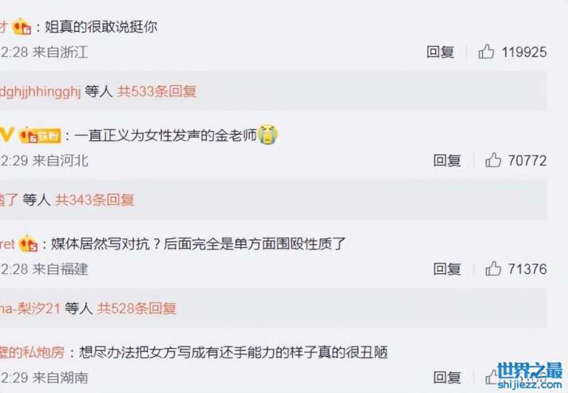 也因为这一次的发言,大家的评价:姐真的很敢说挺你!一直正义的为女性发声的金老师!媒体居然写对抗?后面完全是单方面围殴的性质了!我感觉,用这样的字眼,应该是为后续处理结果做铺垫!