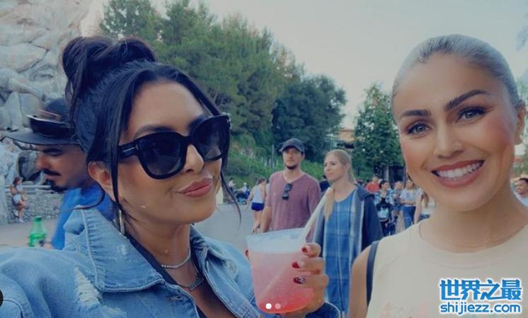 戴着墨镜的她与闺蜜同框合影,此时的瓦妮莎心情不错。