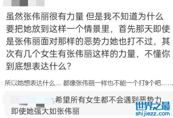 就是这后半段的画蛇添足,被网友认为:章子怡这是不合时宜的“抖机灵”,甚至有人因为她的这一句话滤镜稀碎。网友觉得就算是格斗冠军张伟丽,遇上那晚的意外,也不能一个打九个黑恶势力。
