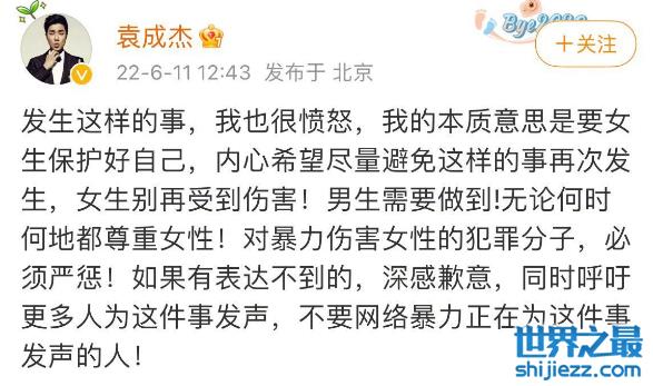 袁成杰作为唐山事件里发声的男明星,也受到了争议。他发出长文表态,希望女性深夜出行要安全防护。