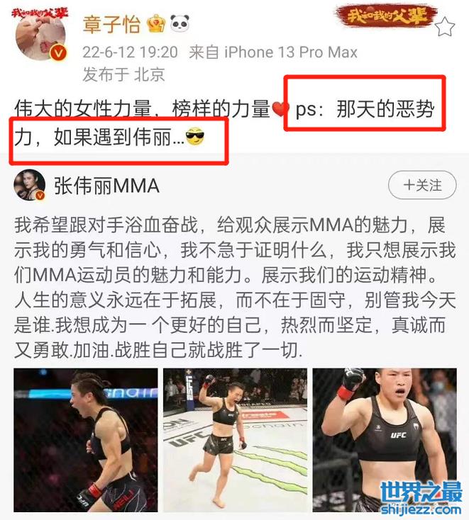 直到12日,格斗运动员张伟丽夺冠,章子怡转发表达祝贺。单纯地祝贺没问题,可是章子怡在赞美张伟丽身上的女性力量时,硬扯上了唐山打人事件,表示:“如果那天的恶势力,如果遇到伟丽......”甚至配上了一个墨镜耍酷的表情。