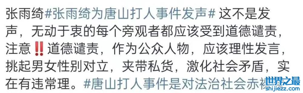 其实正如张雨绮所说,她已经气到头脑发昏了,可能在发声时说话没有过脑子,显得有些极端了。其实她的出发点是好的,也是真心实意地在打抱不平,如果措辞再恰当点,也不会有那么多骂声了。