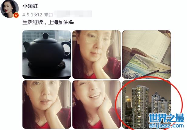 前段时间,住在上海的陶虹发出自己的隔离生活,还配上了窗外的景色。从这小区环境可以查到,这是位于上海长宁区的高档住宅,一平售价起码13万。