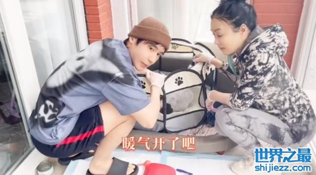 没想到小妞回家的第一天就生了。第一次给狗狗接生的钟丽缇也是手忙脚乱的状态,看到小妞顺利生产,钟丽缇更是激动到语无伦次,赶紧将这个喜讯告诉了老公张伦硕,并呼喊他一起过来帮忙。