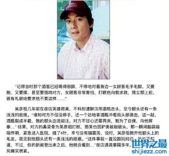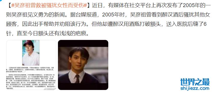 娱乐圈中也有明星曾经因为见义勇为导致自身受伤的例子,2005年,吴彦祖就曾出面解救被陌生男人骚扰的女性,结果被心怀恶意的醉汉拿啤酒瓶击头,最终导致头部被缝6针,至今额头还有浅浅的疤痕,可见当时的伤势颇为严重。