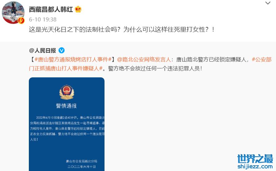 韩红心系唐山打人事件,继发声后,再呼吁男性应当拒绝旁观,挺身而出 ...
