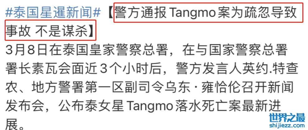 在今年2月份,有消息传出泰国女星Tangmo在乘船游玩的时候落水而亡,同行的5人称她是去船尾小解的时候不慎坠落的。