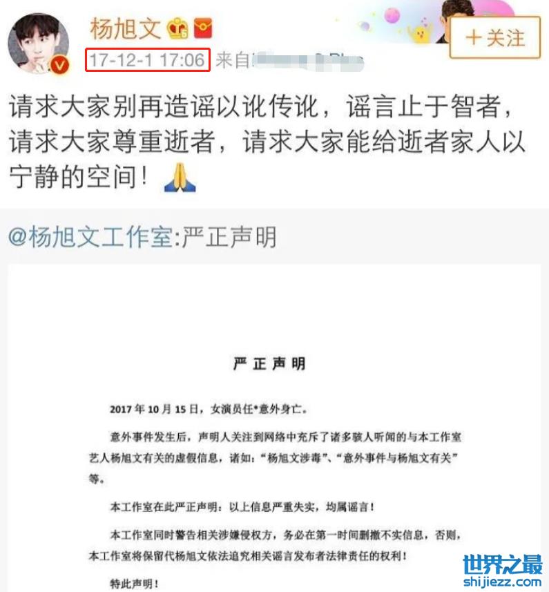 然而杨旭文始终没有回应过,直到快2个月后,警方出调查结果,任娇属于喝酒后意外坠亡时,杨旭文才发声明希望大众停止无端的猜测。