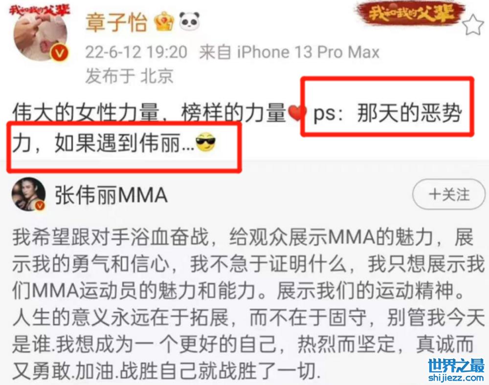 还有章子怡,她在张伟丽夺冠的微博转发里,说“如果当天的恶势力遇到伟丽”,此话也被网友看作是不合时宜的“抖机灵”。