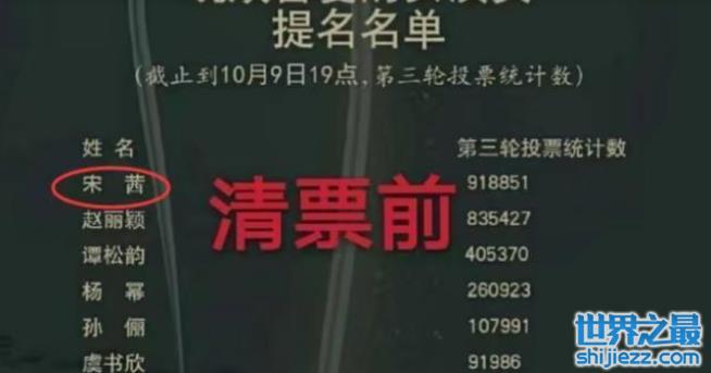 在未开奖时宋茜与赵丽颖是竞争关系,因为当时观众投最喜欢女演员奖时,一开始宋茜的票数高达91万超越赵丽颖稳居第一名,但后来水果台为了洗刷“水分”的标签,进行了一次刷票的操作,清票之后宋茜的91万变成了37万,从第一名变成了第三名,随之第一名就变成了赵丽颖。