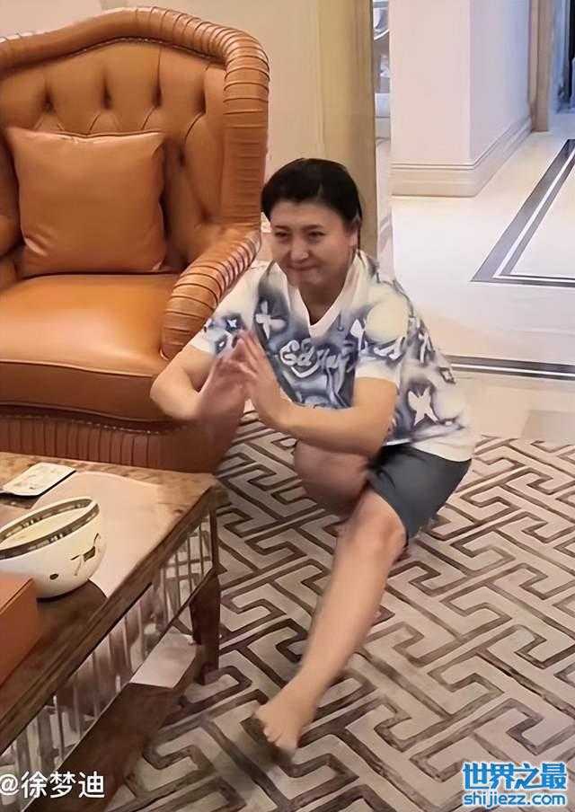 近日,闫学晶儿媳徐梦迪在社交平台上发布了一段闫学晶在家锻炼的视频。视频中的闫学晶素颜出镜,将头发全部绑至脑后,穿着短衣短裤非常清凉。从视频中可以看出家中客厅十分宽敞,大理石地砖和皮质沙发尽显富贵。她抬起左腿,双手轻轻贴在一起,依靠着右腿缓慢下蹲。