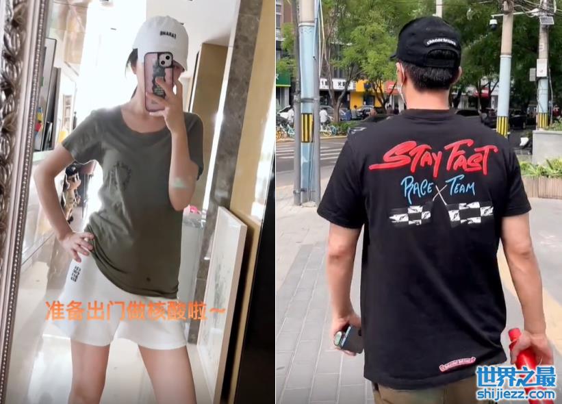 在染发之前,王灿先和杜淳一起出门做了核酸。她带着一顶鸭舌帽,身穿短袖T恤,搭配上超短裤,整个人休闲范十足。穿着短裤的她,双腿十分纤细,身材很好。出门后,因为王灿走得比较慢,杜淳便一人先走在前面,手里拿着一些东西,像出门遛弯的大爷。