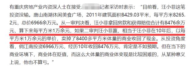 据案件资料显示,汪小菲购置的这栋楼盘原为唐山南湖休闲美食广场,于2011年9月25日与唐山市城投房地产有限公司签订购房合同,建筑面积为8429.03平米,总价为6966余万,折算下来每平米均价为8265.2元。
