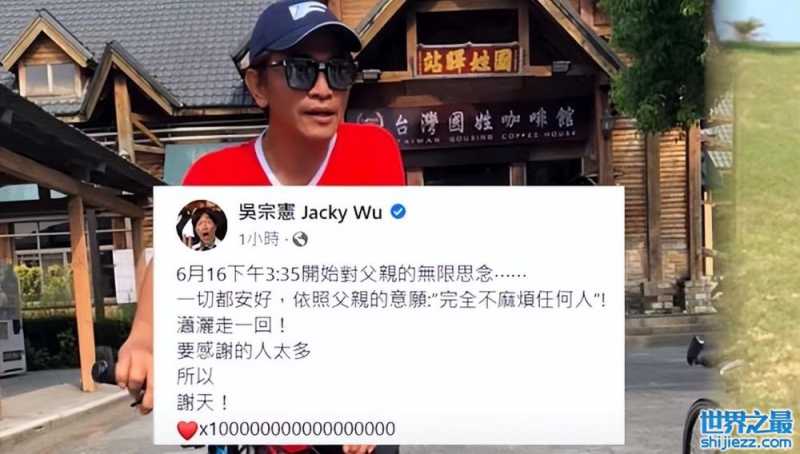 6月17日,在传出父亲离世的消息之后,吴宗宪露面首次更新发文。