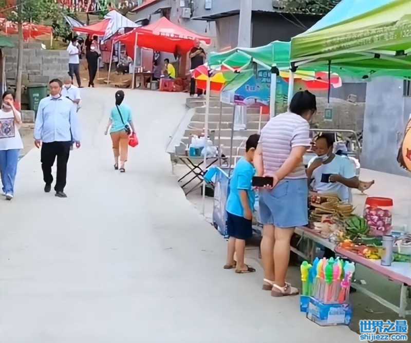 比如在进入拉面哥家大唱台的时候,村里已经修了水泥路,并且路的两旁都已经摆满了小摊,都是村民们为了满足外面的游客所准备的。
