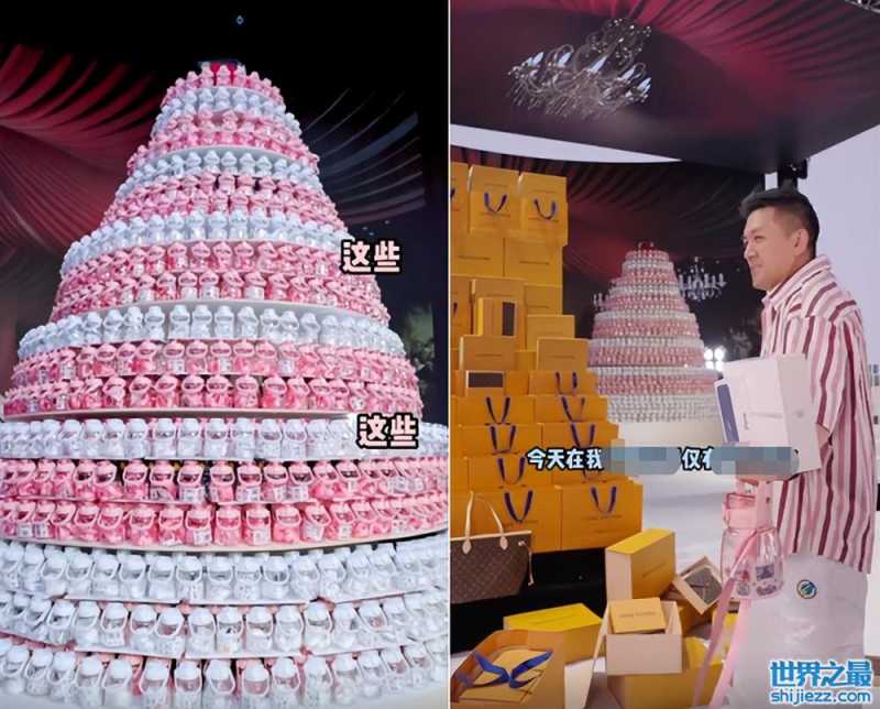不仅是有堆满屋的奢侈品,杨子随后还晒出了一座由百万个大肚杯堆成的水杯塔,层层叠叠,直接堆到了房间的顶端,画面看起来非常震撼且具有冲击力。而杨子也没有卖关子直说,这也是为粉丝们准备的福利品。