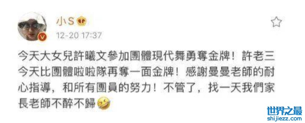 小s一直是大胆敢言的性格,同时她也是个晒娃狂魔,她曾在社交平台激动的分享,大女儿和三女儿的拿下舞蹈比赛和团体拉拉队金牌的事情,却只字不提二女儿。