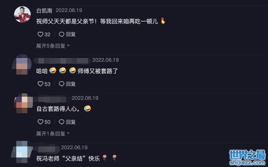 看到冯巩被徒弟耍了之后,粉丝和网友们纷纷在其评论区留言。有网友称“师父”又被套路了,也有网友很损地说“祝冯老师父亲结快乐”。在评论区里还出现了白凯南的身影,他说“祝师父天天都是父亲节,等我回来咱再吃一顿”,亲徒弟可真会坑师父。